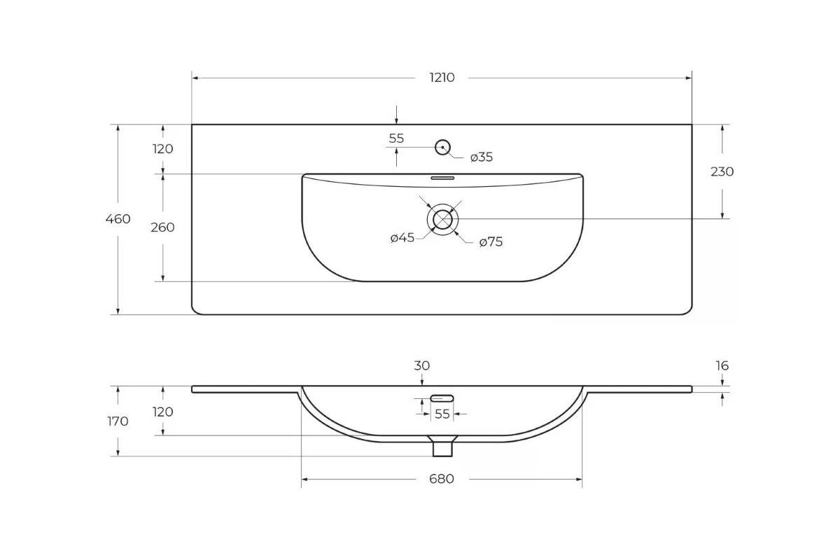 Раковина мебельная BelBagno Uno 121x46 белая глянцевая (BB-8099-120)