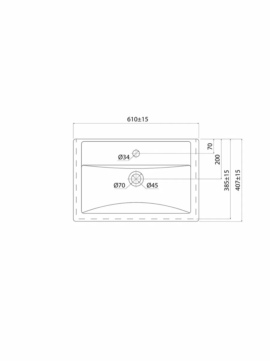 Умывальник мебельный. Материал: санитарный фарфор. Размер: 610х407х185. Цвет: белый. Вес: 12,5 кг. Глубина чаши, мм: 140 мм.