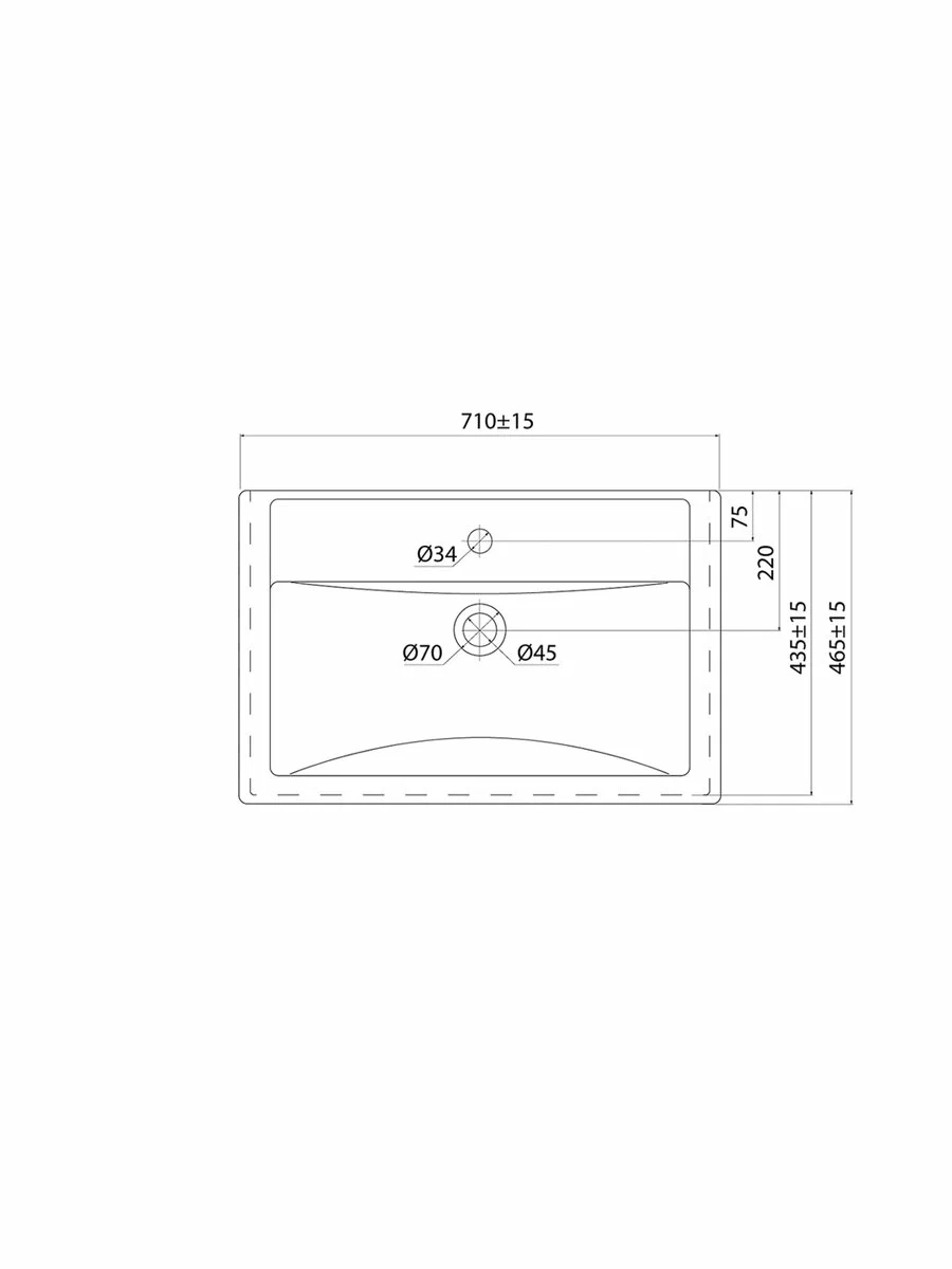Умывальник мебельный. Материал: санитарный фарфор. Размер: 710х465х193. Цвет: белый. Вес: 16 кг. Глубина чаши, мм: 145 мм