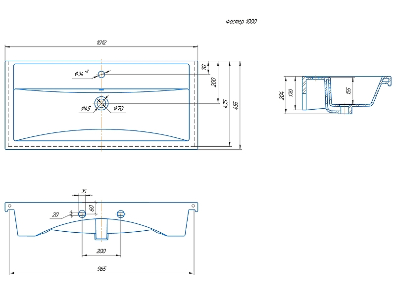 Раковина мебельная Kirovit Фостер 1012x204x455 белая (4640021065204)