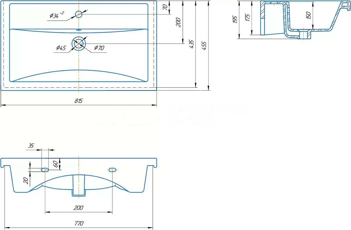 Раковина мебельная Kirovit Фостер 815x195x455 белая (4640021064733)