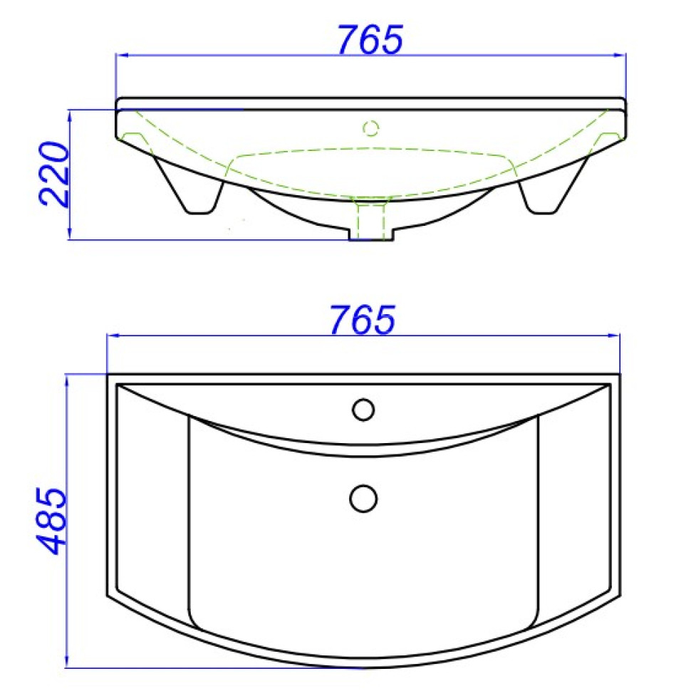 Раковина мебельная Kirovit Стиль 765x220x485 белая (4620008197470)