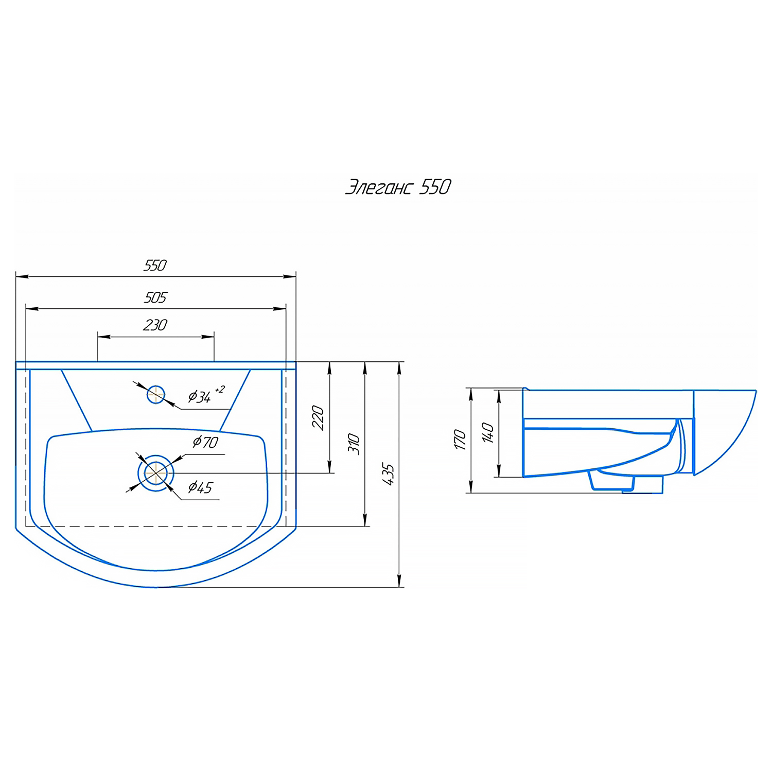 Эти компактные, но при этом вместительные размеры делают раковину идеальным выбором для установки на мебельные тумбы, обеспечивая удобство использования и максимальную эргономику пространства.