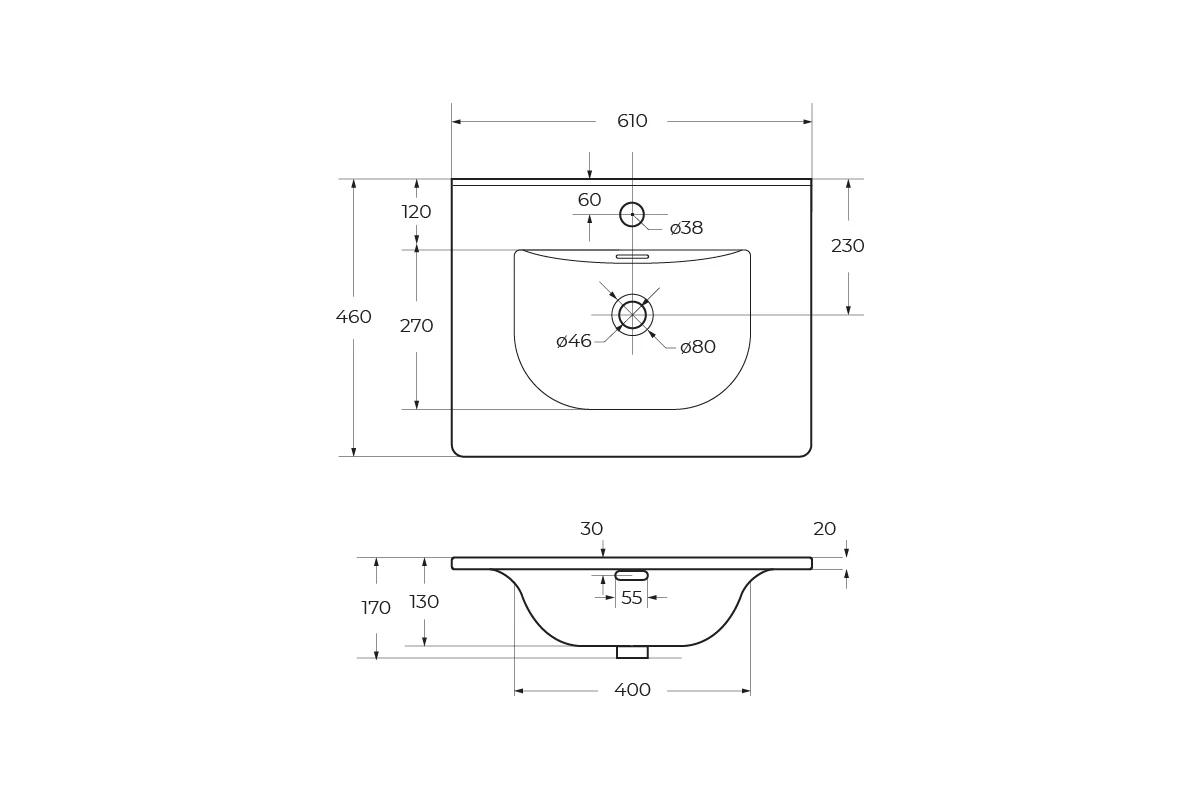 Раковина мебельная Uno BelBagno 61x46 белая глянцевая (BB-8099-60)