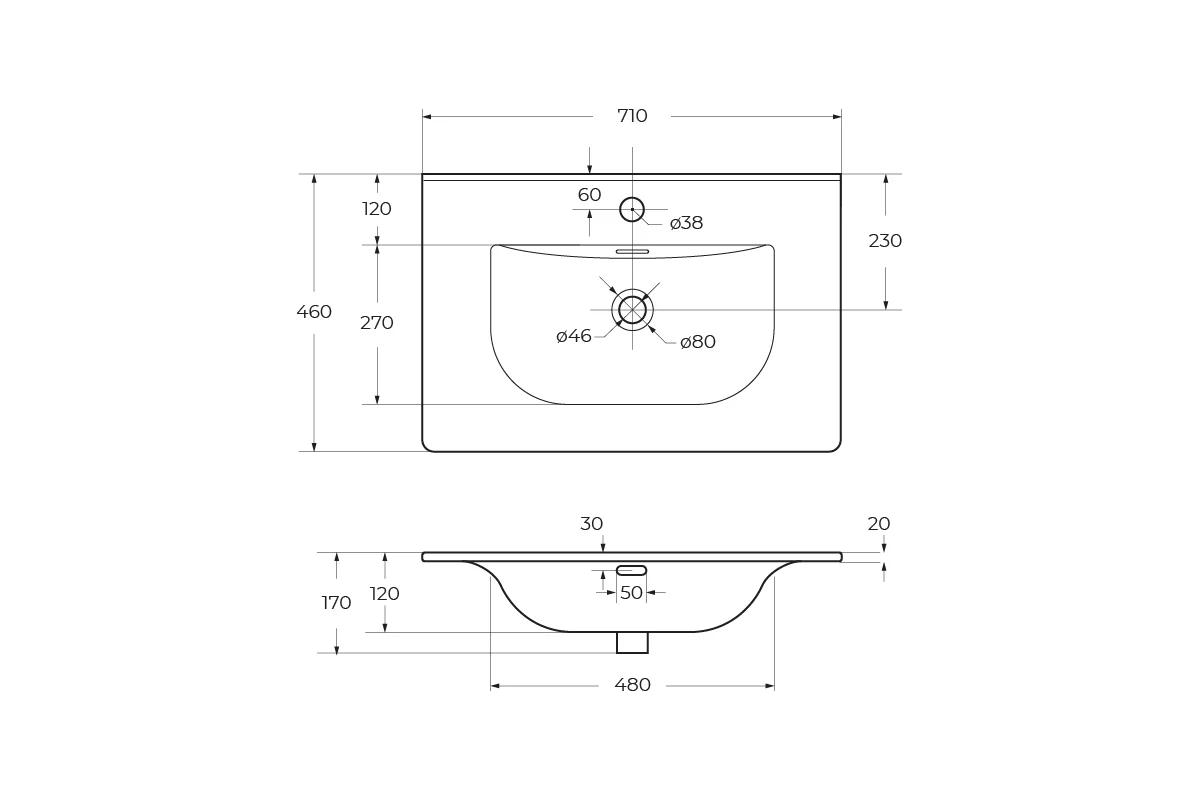 Раковина мебельная Uno BelBagno 71x46 белая глянцевая (BB-8099-70)