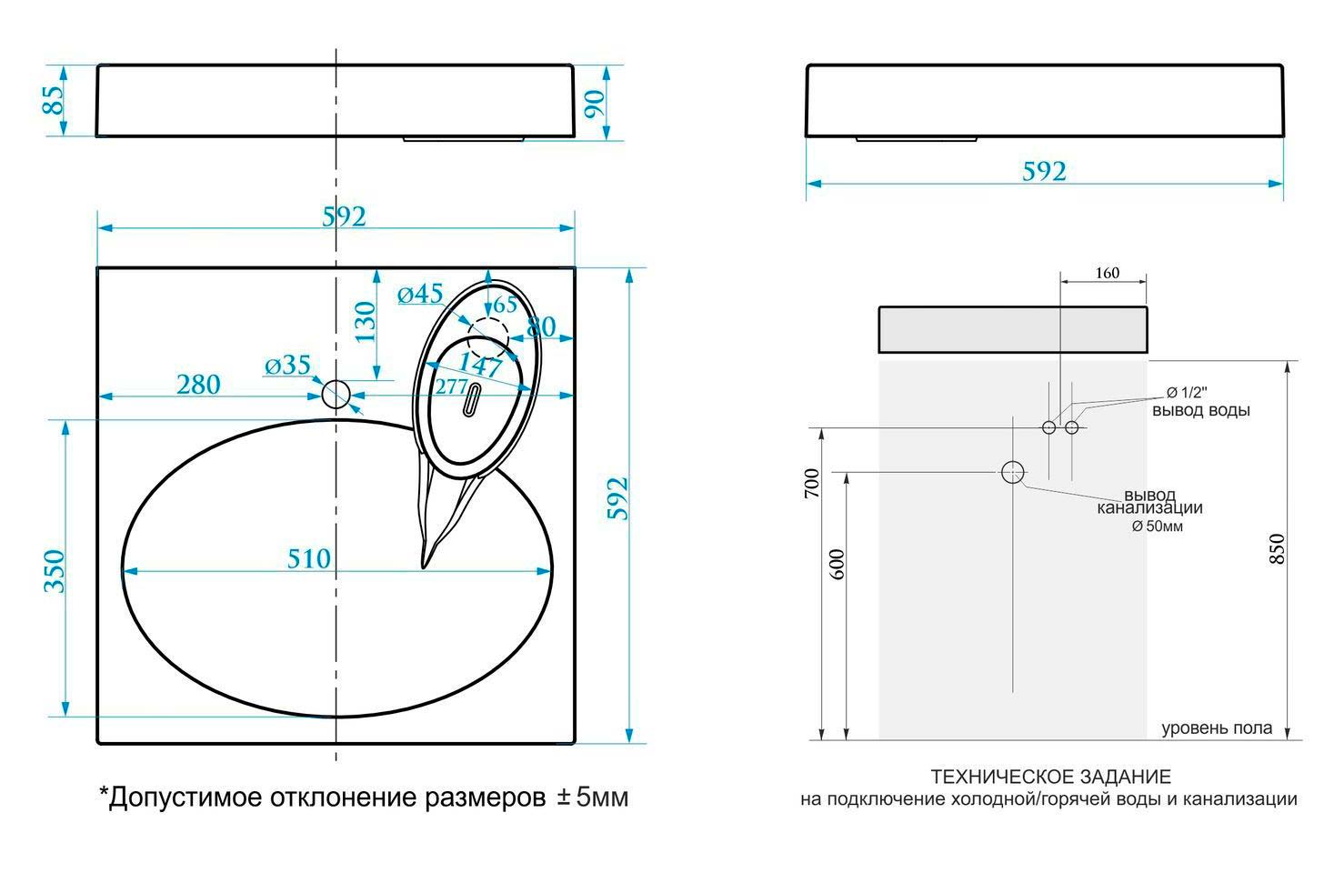 Примечание: раковина устанавливается на кронштейны над стиральной машиной(не допустимо монтировать на столешницу стиральной машины).
