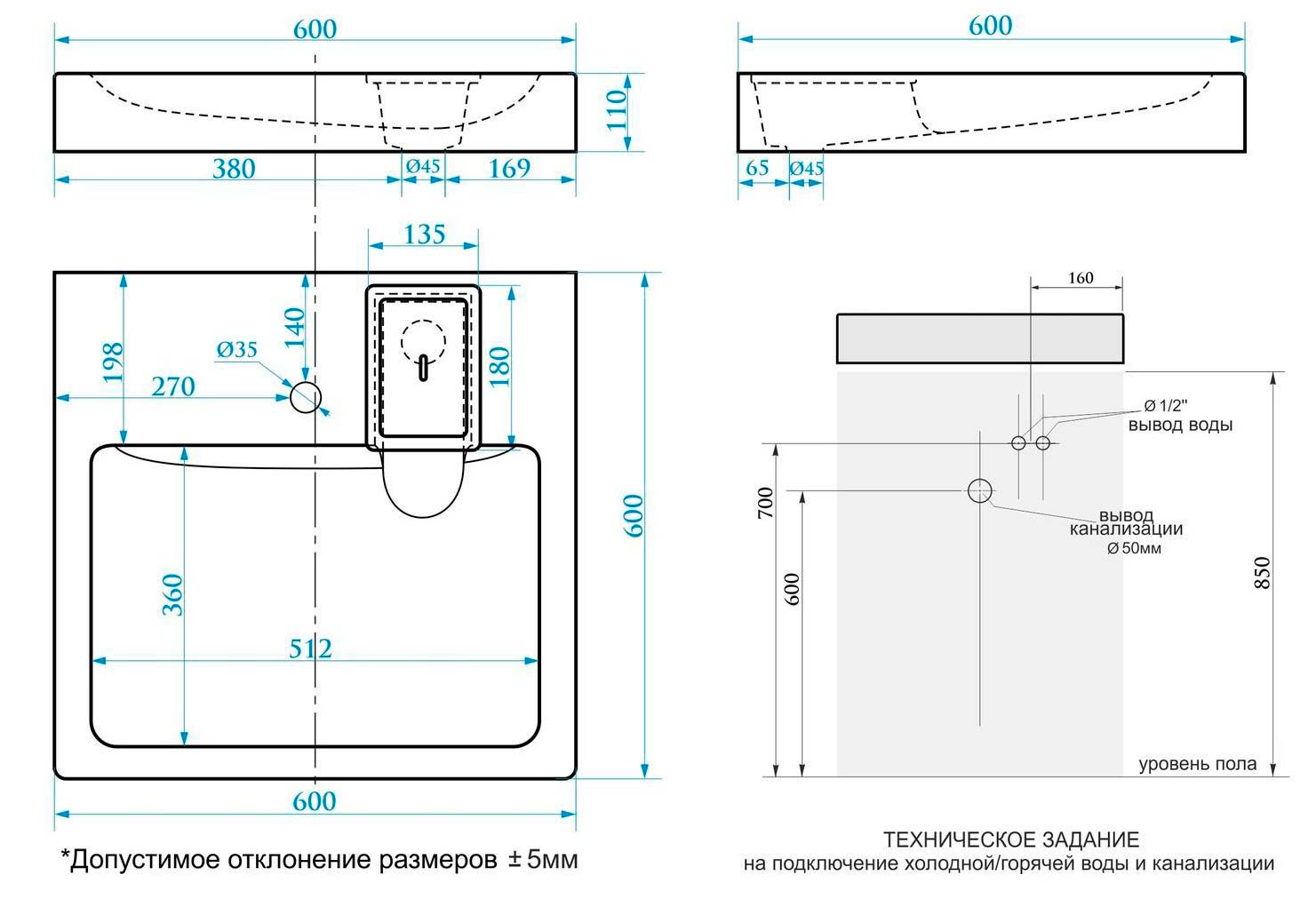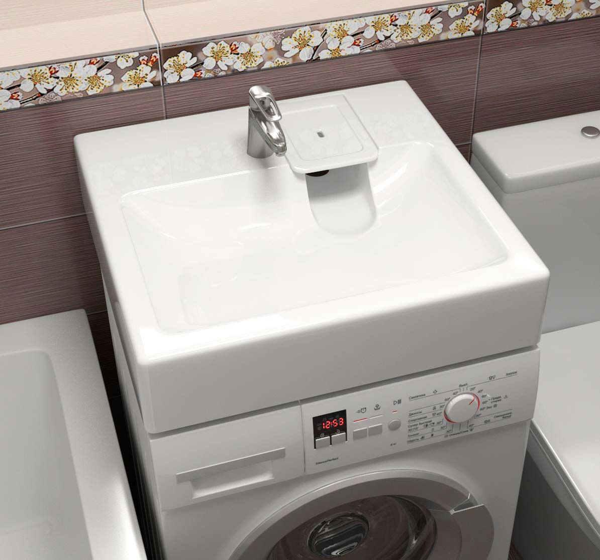 Примечание: раковина устанавливается на кронштейны над стиральной машиной(не допустимо монтировать на столешницу стиральной машины).