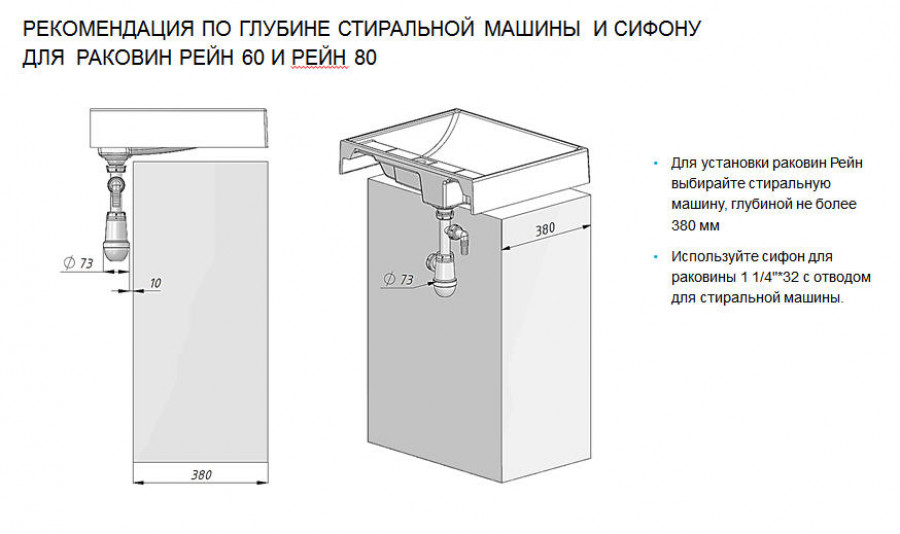Раковина над стиральной машиной Aquaton Рейн 50x80x13,8 L белый (1.A721.1.3KR.W01.0)