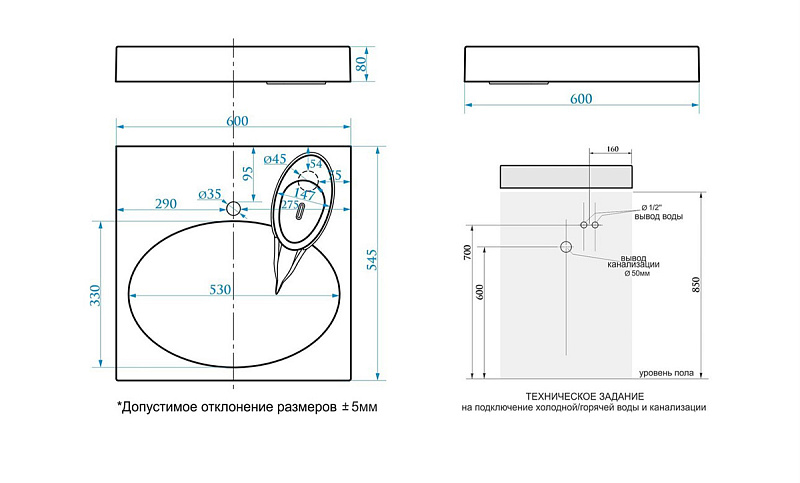 Раковина над стиральной машиной Azario 60x54,5x80 с сифоном белая (CS00082259)