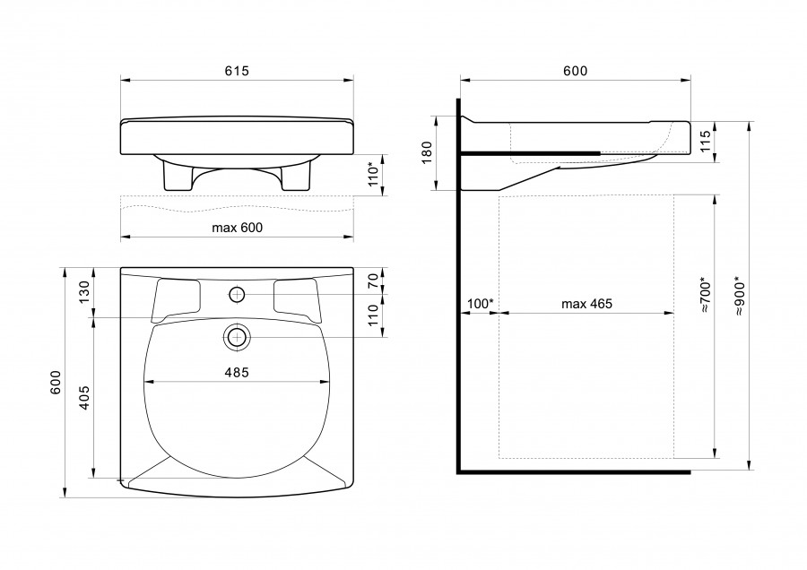 Раковина для установки над стиральной машиной. Для Пилот-60 - глубина стиральной машины не более 430 мм