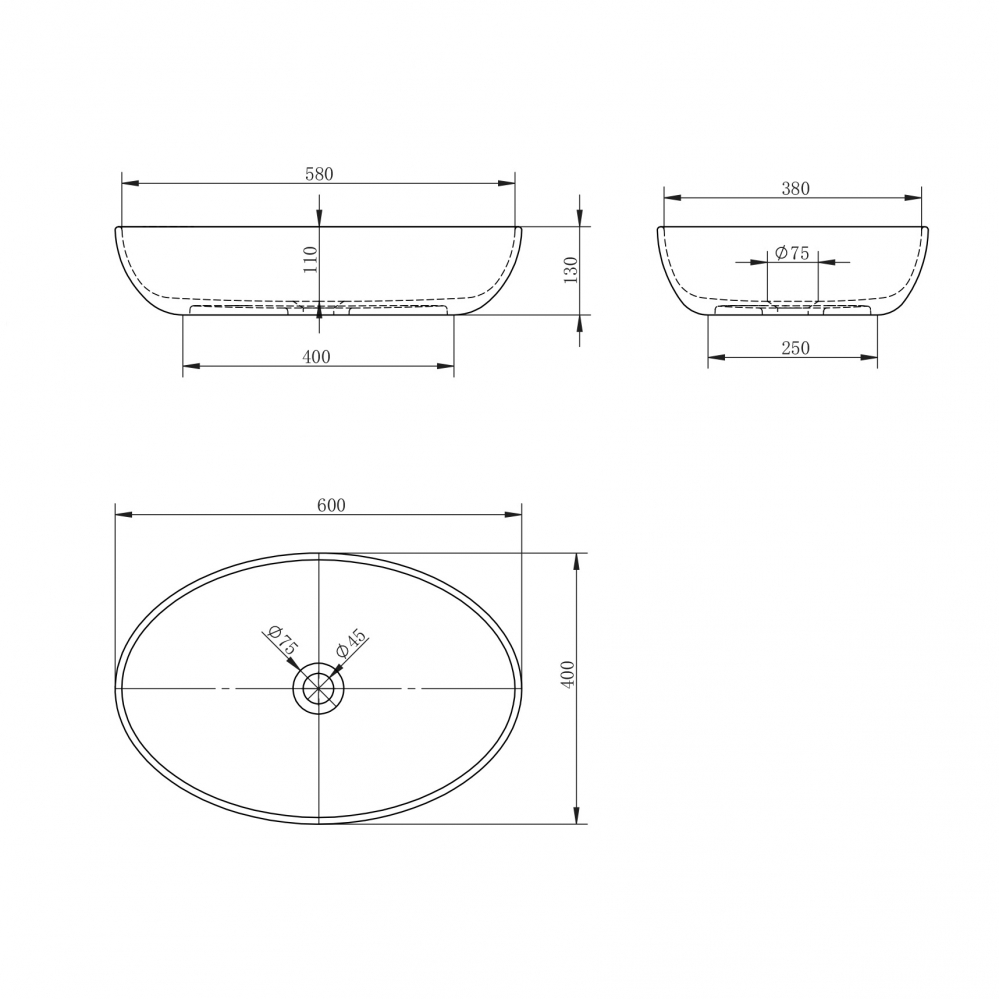 Раковина накладная Abber Karbon 600x400 черный (AK2041)