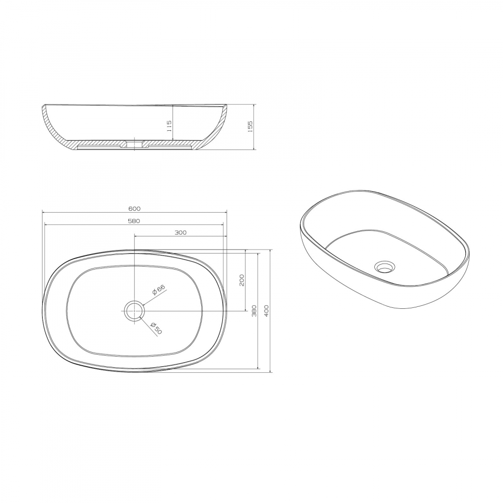Раковина накладная Abber Kristall 600x400 зеленый (AT2805Emerald)