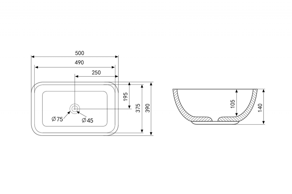 Раковина накладная Abber Rechteck 500x390 белый матовый (AC2202MW)