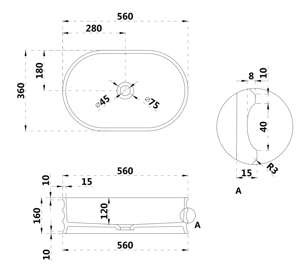 Раковина накладная Abber Stein 560x360 белый матовый (AS2650)