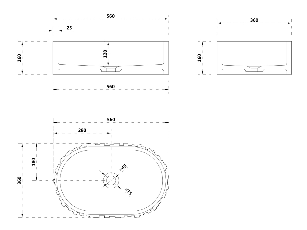 Раковина накладная Abber Stein 560x360 белый матовый (AS2655)