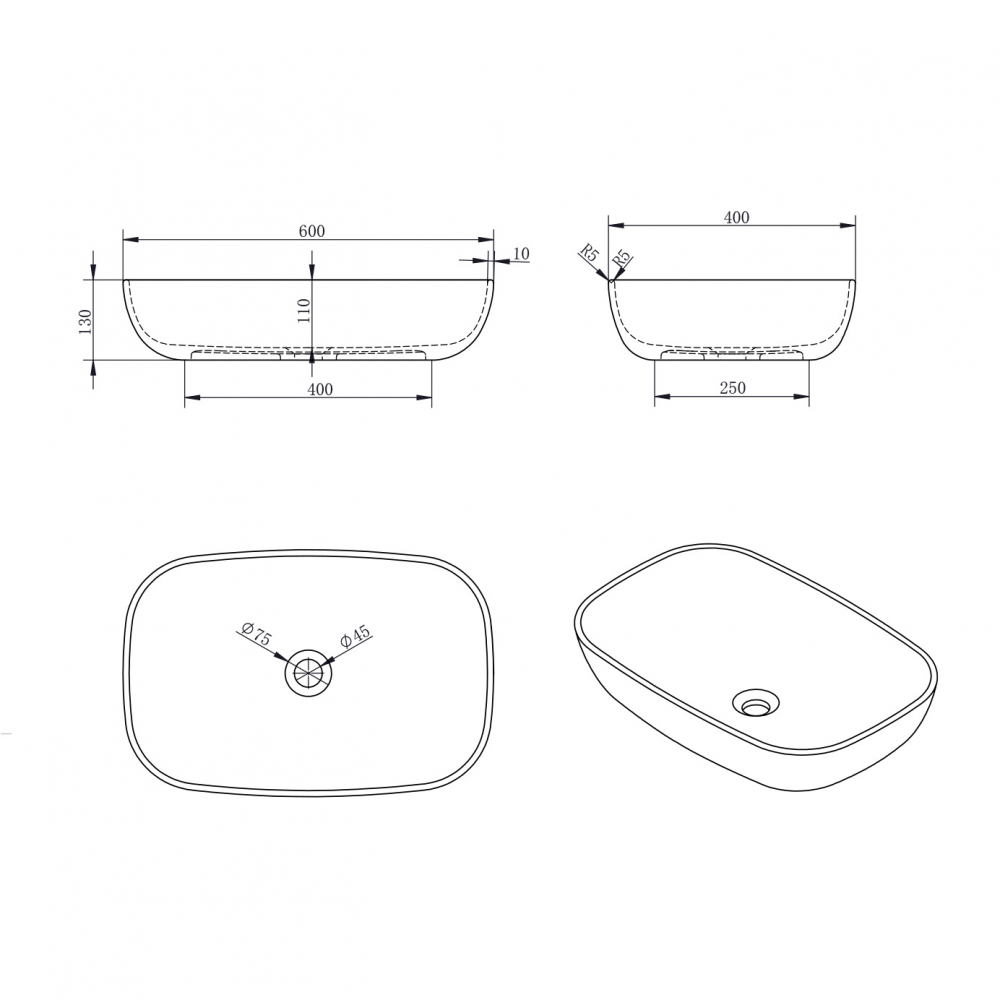 Раковина накладная Abber Stein 600x400 белый матовый (AS2620)