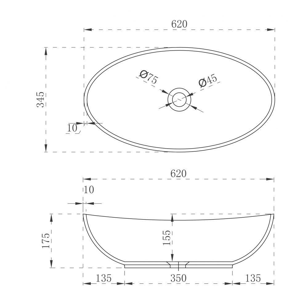 Раковина накладная Abber Stein 620x345 белый матовый (AS2610)