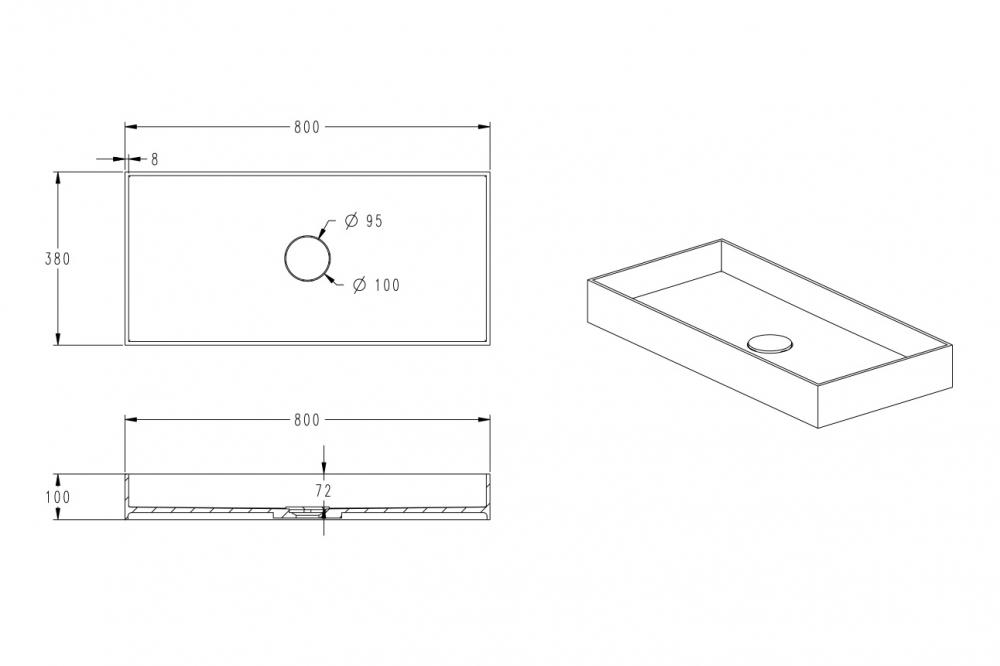 Раковина накладная Abber Stein 800x380 белый матовый (AS2622)