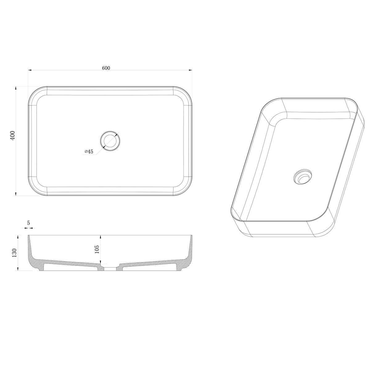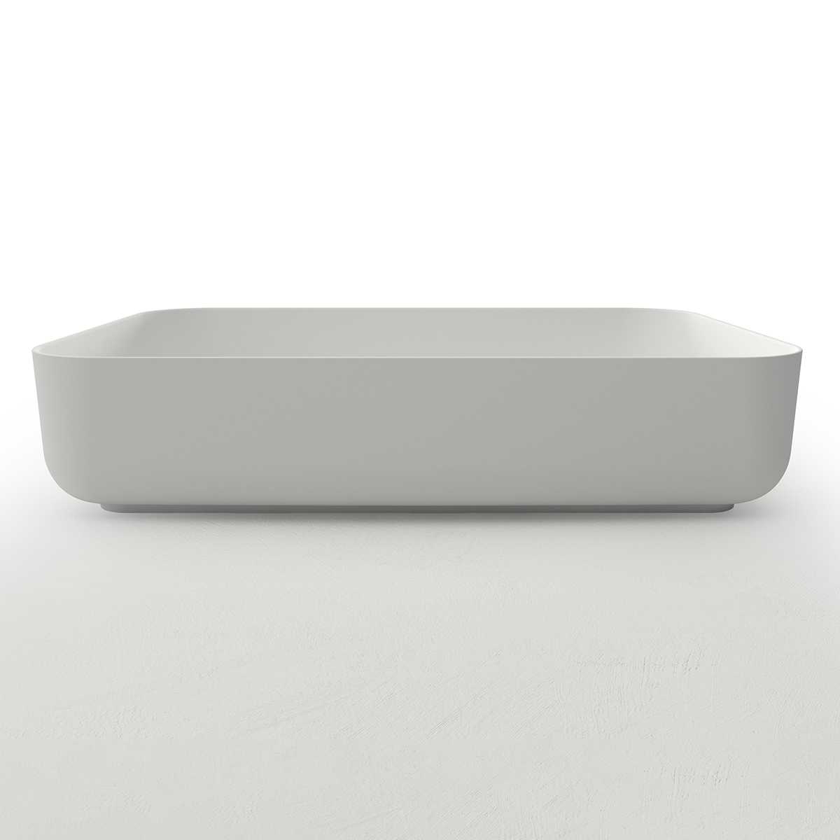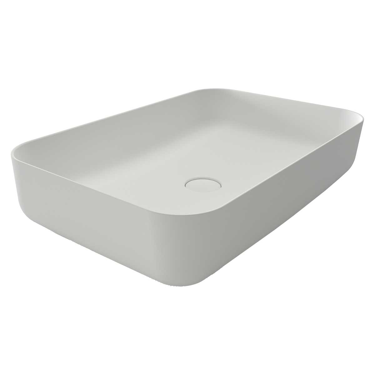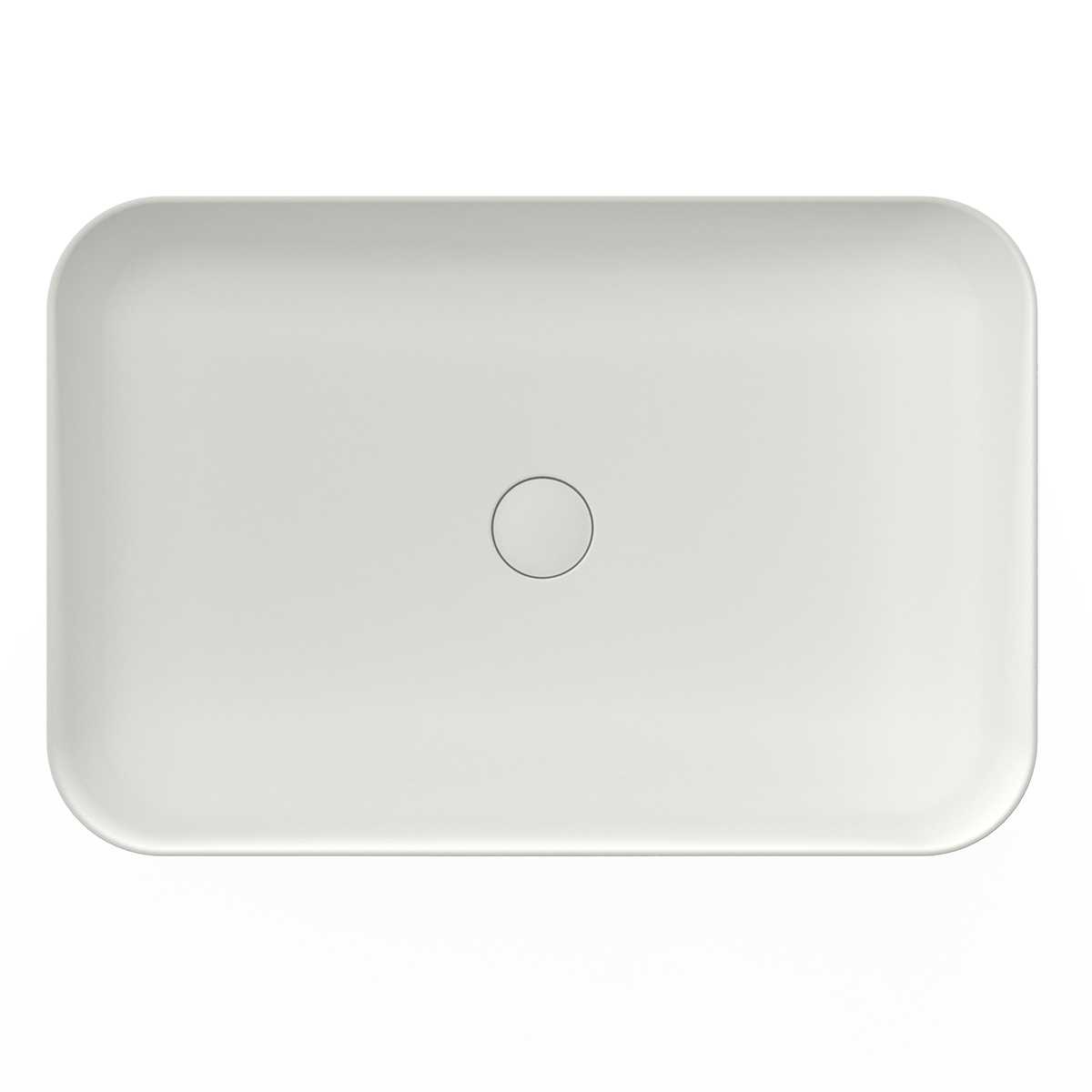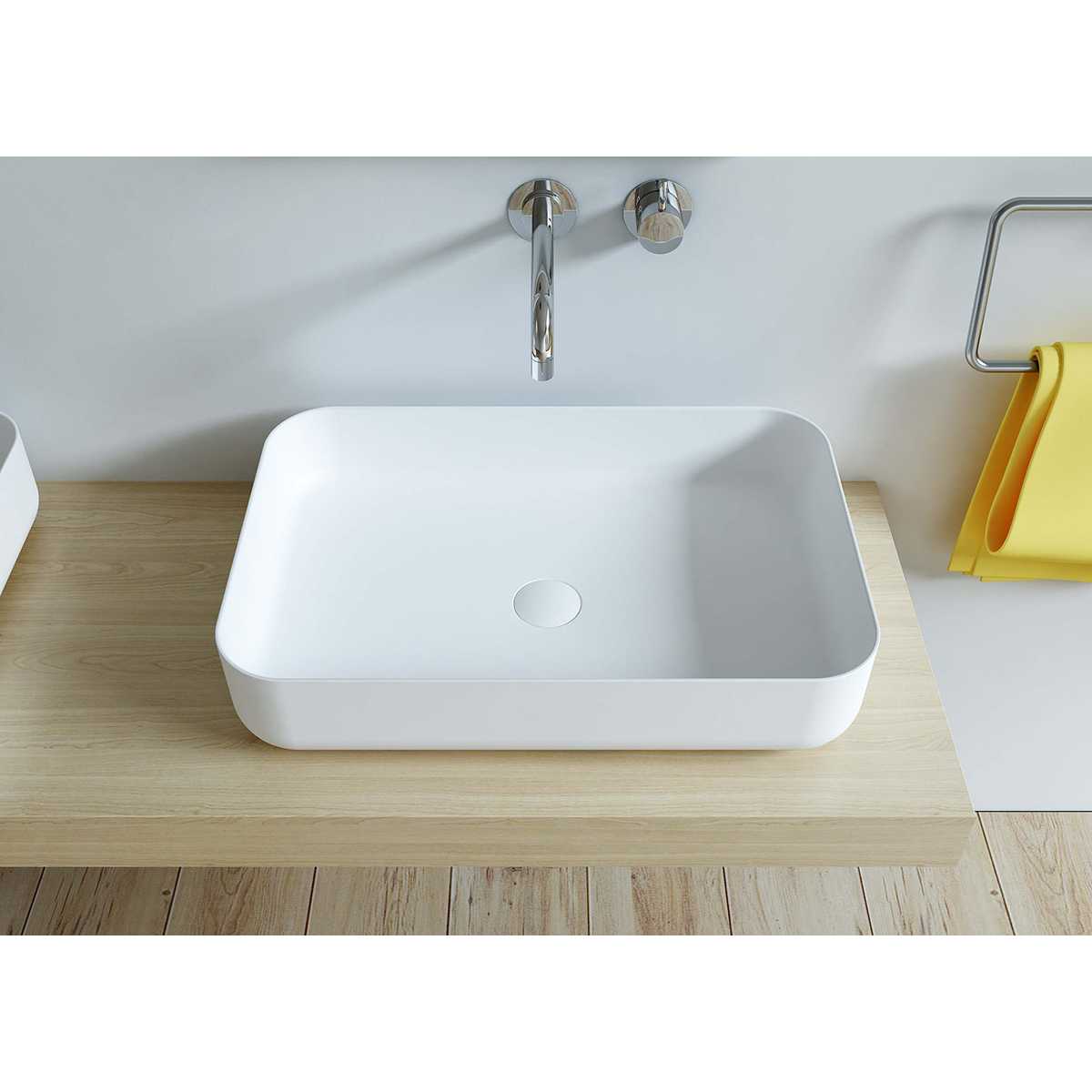 Раковина накладная из искусственного камня белая матовая, с белым матовым донным клапаном