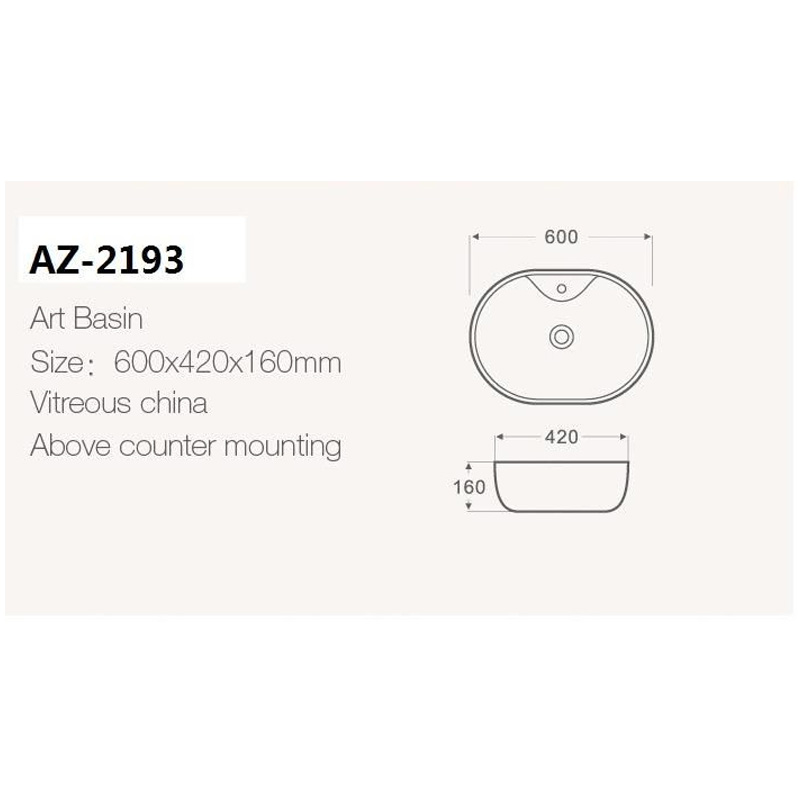 Раковина накладная Azario Orleans 60x16x42 белая (AZ-2193)