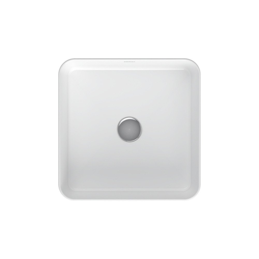 Накладная раковина из санфарфора Berges Ego SL размером 38х38х11,5 см. Квадратной формы, без отверстия под смеситель, глянцевая белая.