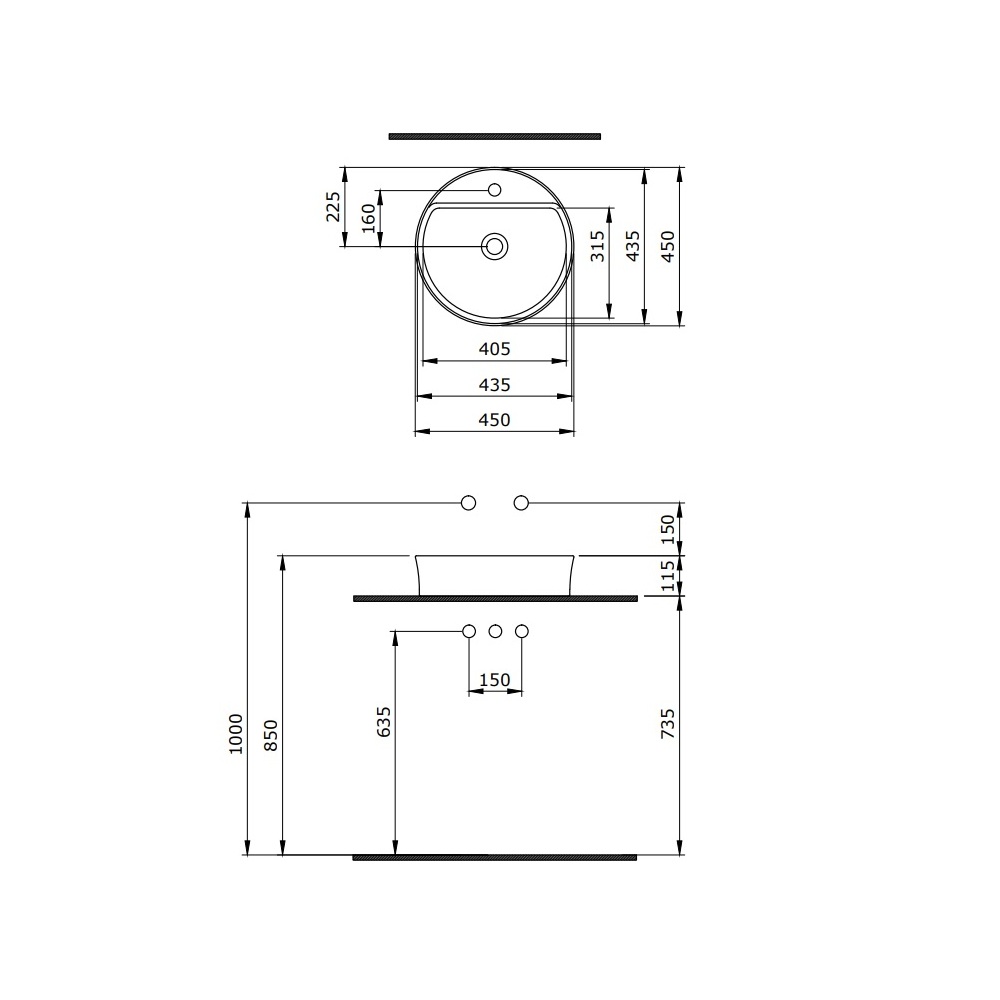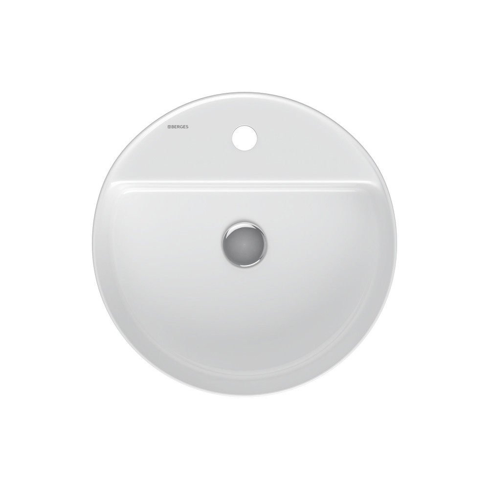 Накладная раковина из санфарфора Berges Ego размером 45 см. Круглой формы, с отверстием под смеситель, глянцевая белая.