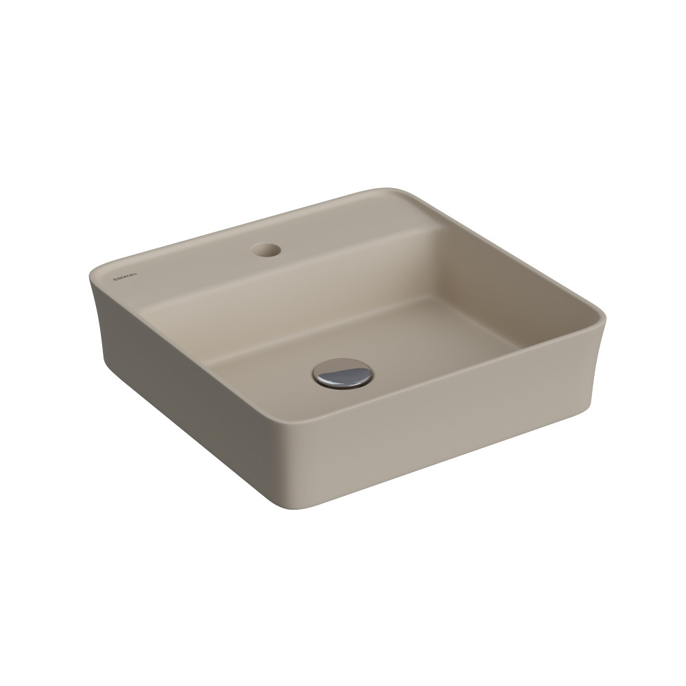 Накладная раковина из санфарфора Berges Ego SL матовый жасмин, размером 45х45х11,5 см. Квадратной формы, с отверстием под смеситель.