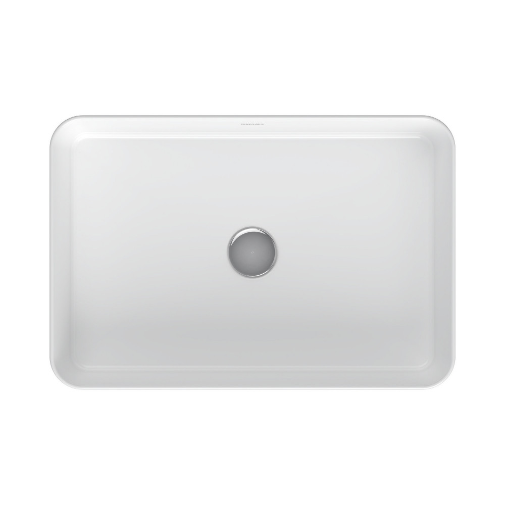 Накладная раковина из санфарфора Berges Ego SL размером 55х38х11,5 см. Прямоугольной формы, без отверстия под смеситель, глянцевая белая.