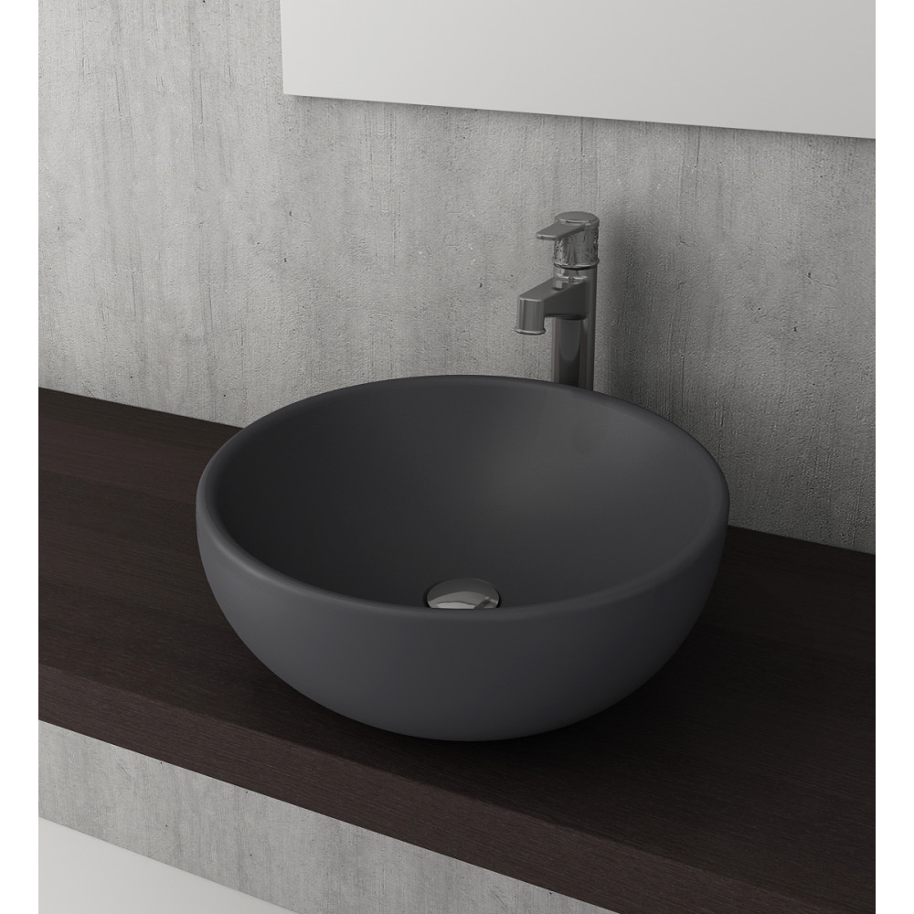 Накладная раковина из санфарфора Berges Mascon матовый антрацит, диаметром 45 см. Высота 17,5 см.