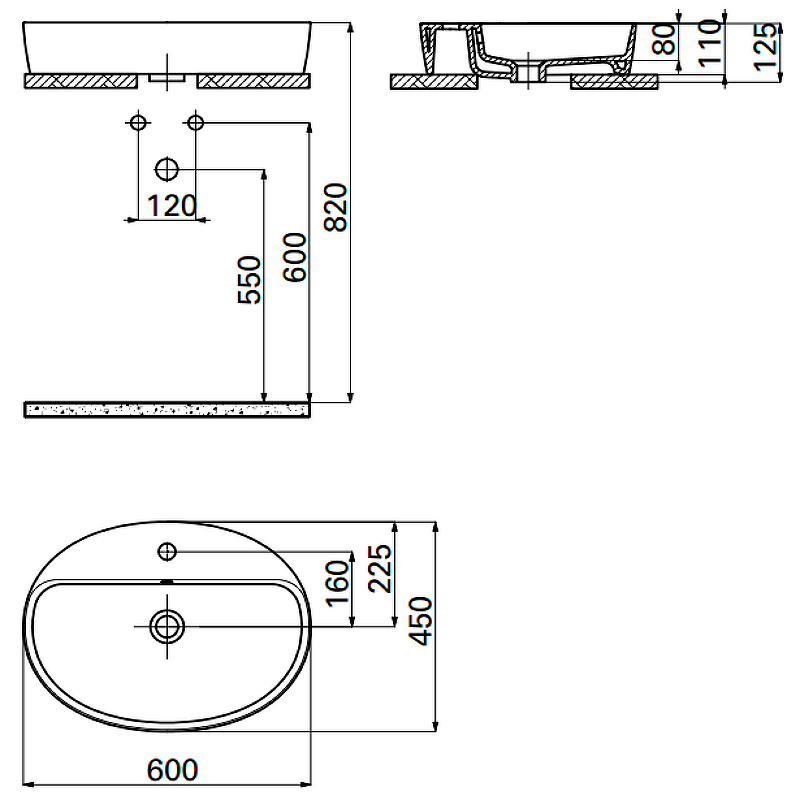 Раковина накладная Creavit Loop 60x40 белая (LP161-00CB00E-0000)