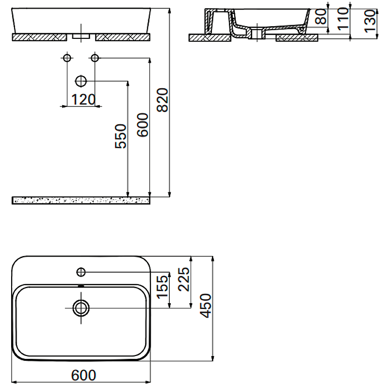 Раковина накладная Creavit Loop 60x45 белая (LP061-00CB00E-0000)