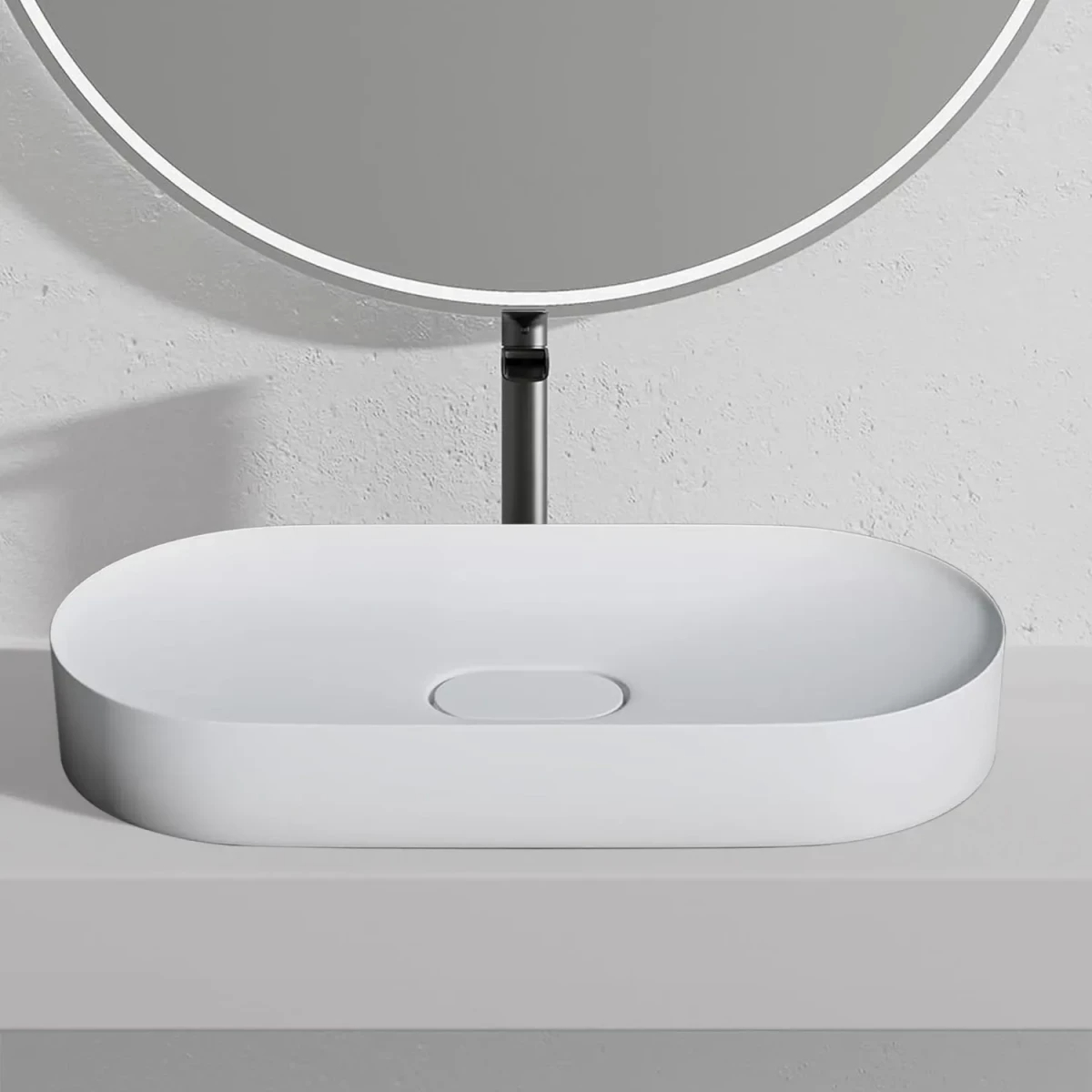 Раковина накладная конгломерат REA Iris white mat 70x35,5x10,5 белая матовая (REA-U4305)