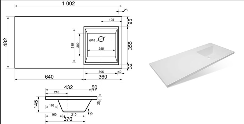 Раковина накладная Melodia Даллас -1000 102x14,5 (чаша справа) (MFR79591WT)