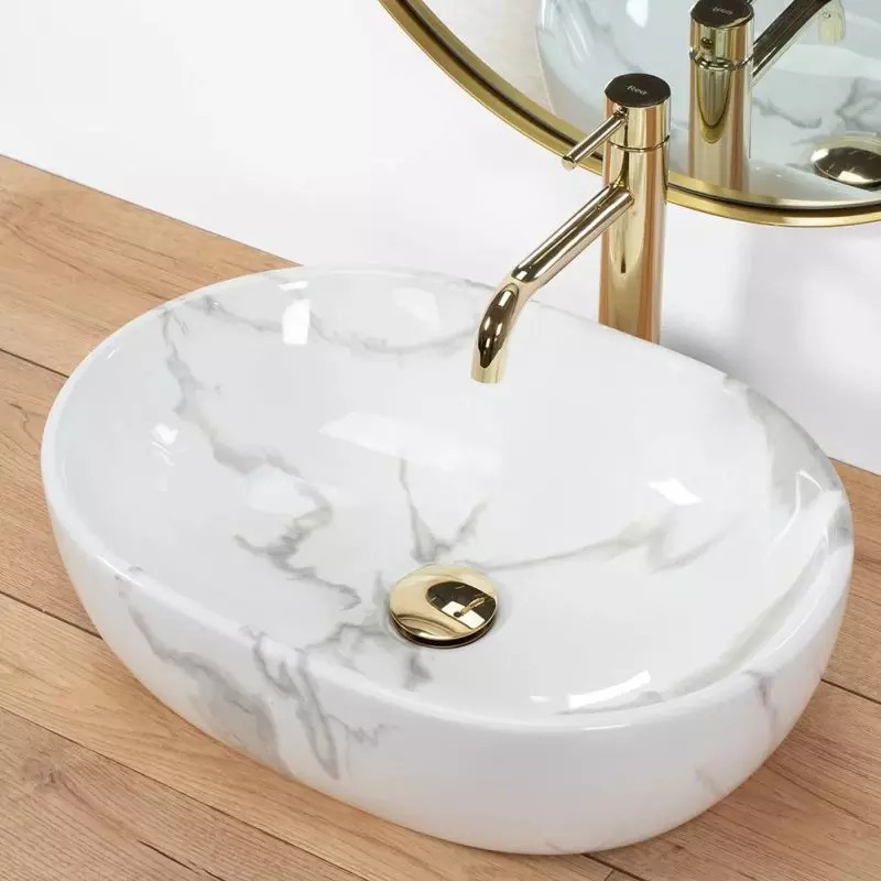 Раковина накладная Rea Amelia 48x34,5 мрамор (REA-U8001)