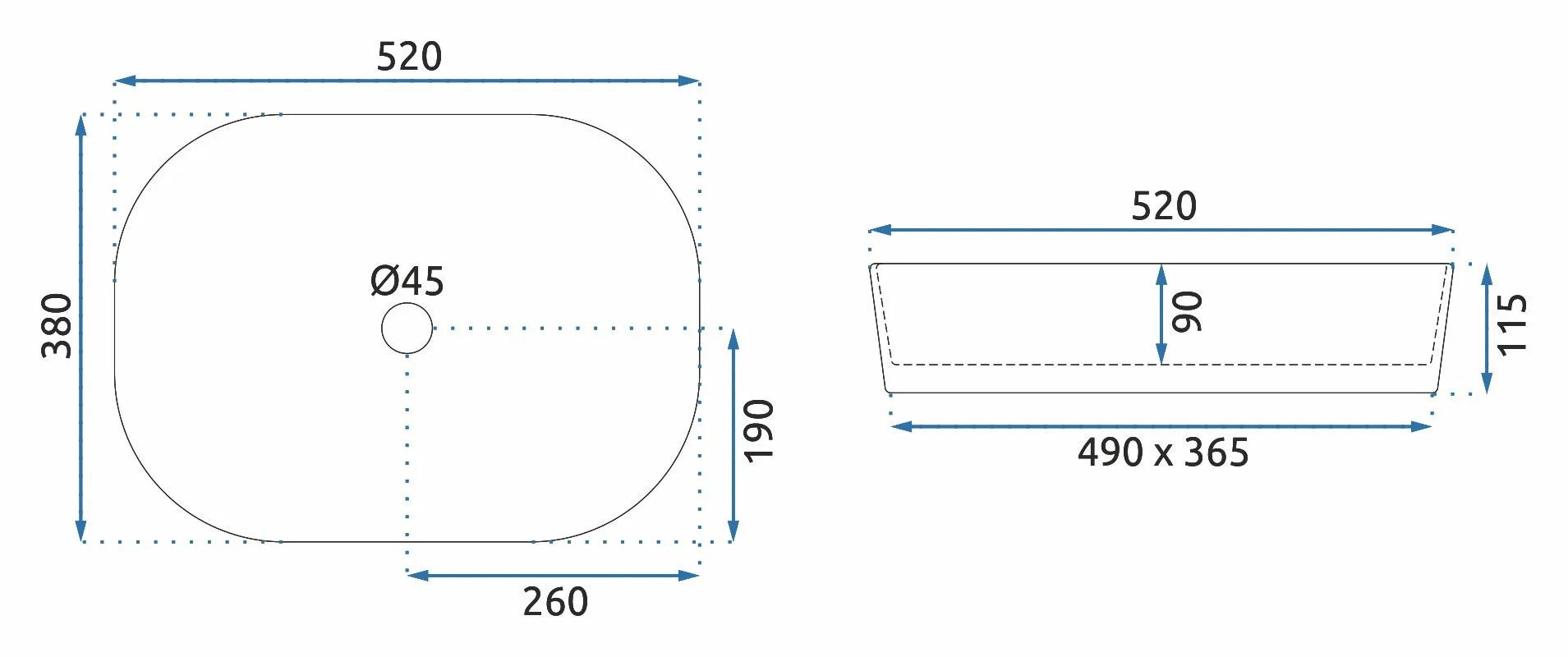 Раковина накладная Rea Angie 52x37,5 белый (REA-U4121)