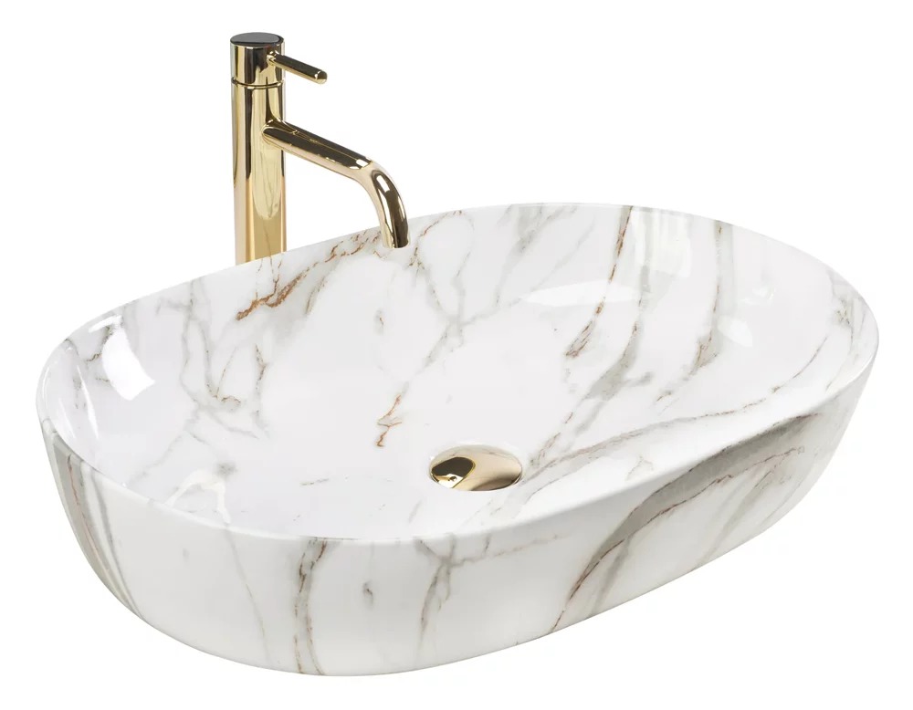 Раковина накладная Rea Cleo 60,5x41 мрамор (REA-U9656)