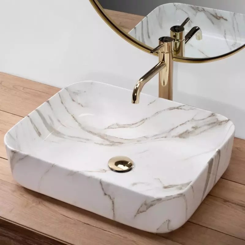 Раковина накладная Rea Demi 55x39,5 мрамор (REA-U4100)