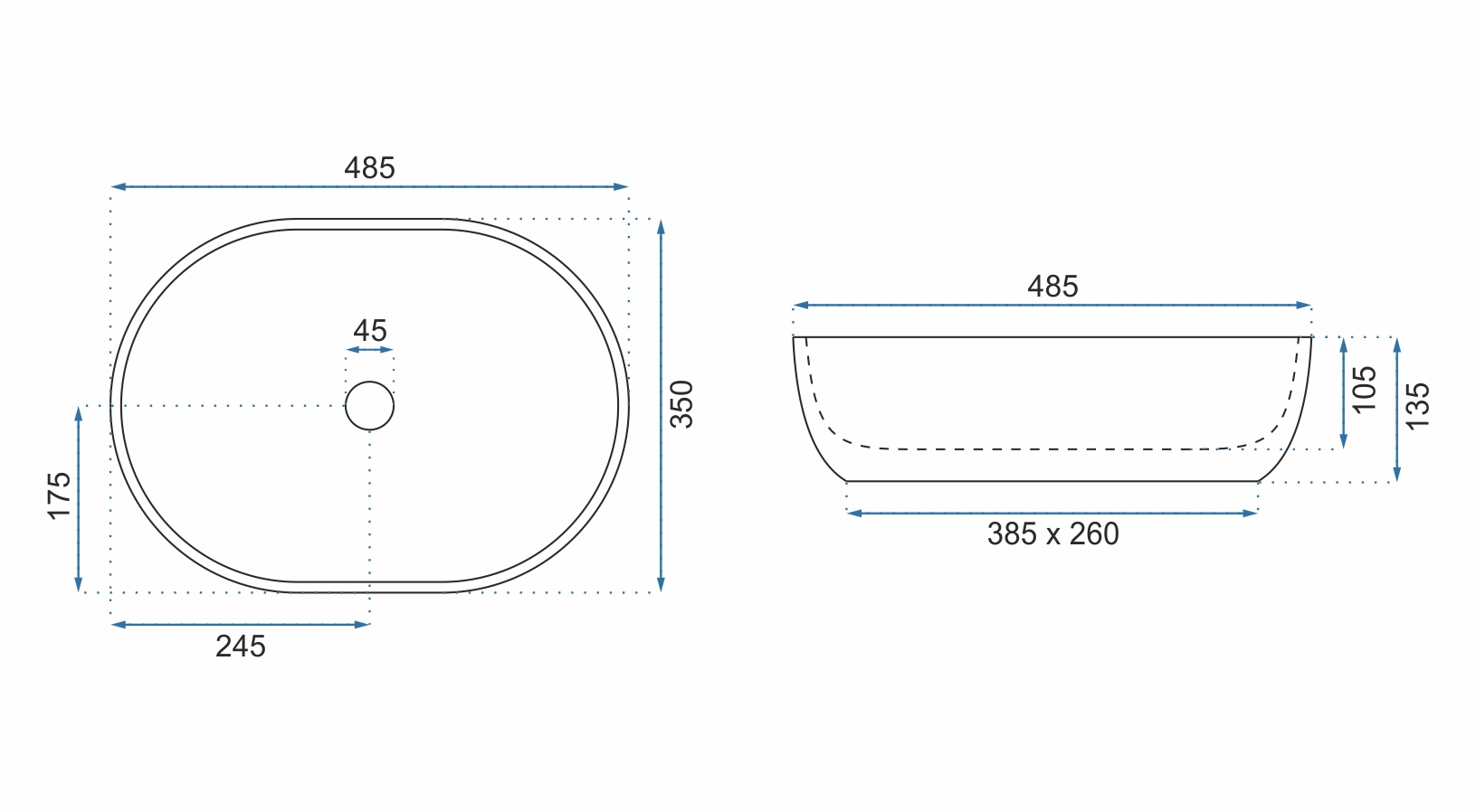 Раковина накладная Rea Lara 48,5x35 серый (REA-U9889)