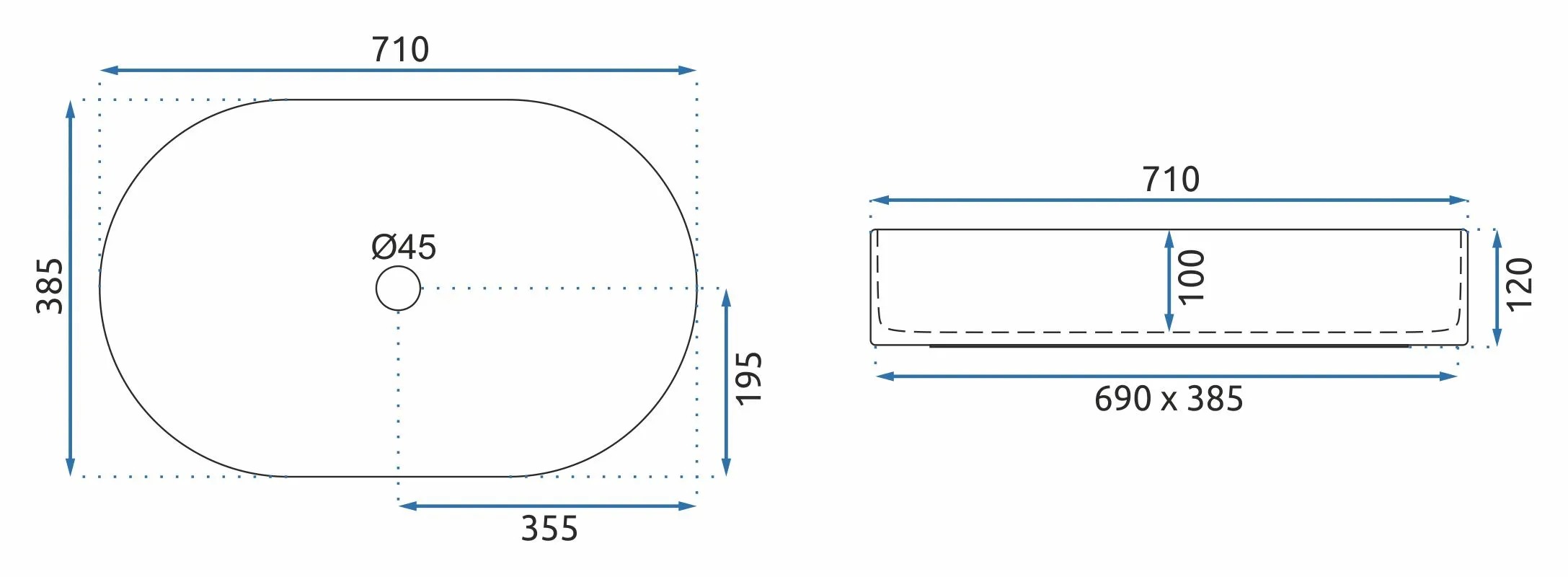 Раковина накладная Rea Nadia 71x38,5 белый (REA-U5801)