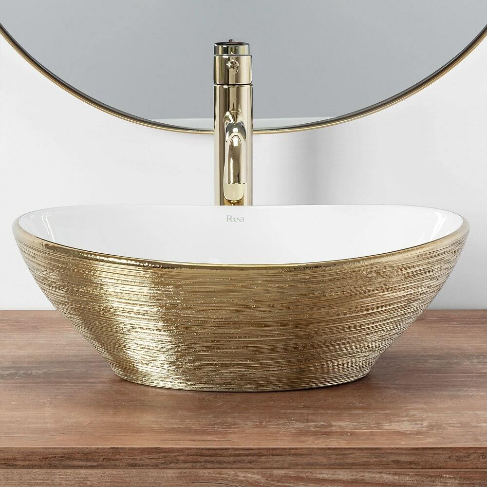 Раковина накладная Rea Sofia 41x34,5 белый с золотом (REA-U3697)