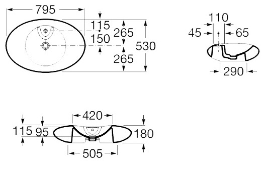 Раковина накладная с одним отверстием под смеситель.