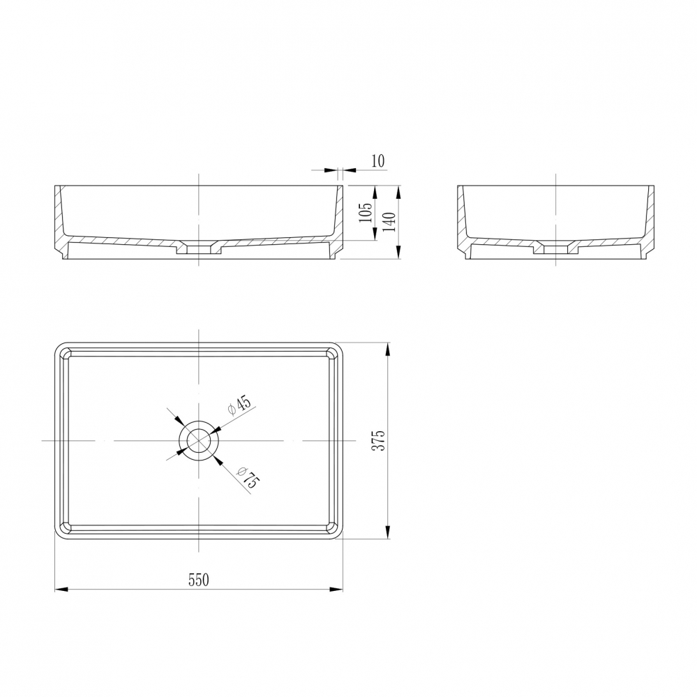 Раковина накладная Stein (белый матовый)