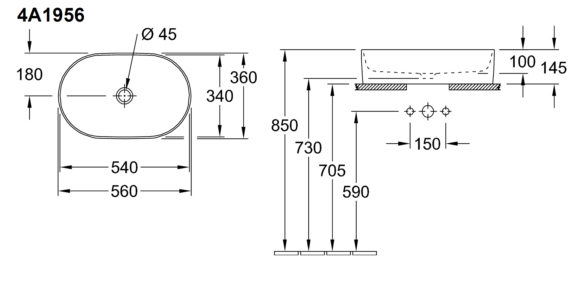 Состав поставки: раковина накладная