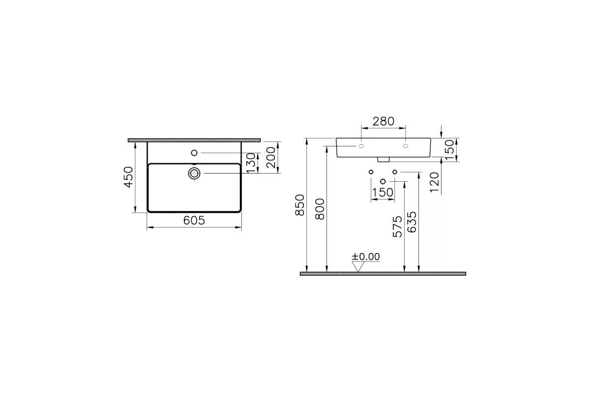 Раковина накладная Vitra M20 60,5x45 подвесная с отверстием под смеситель белая (8314B003-0001)