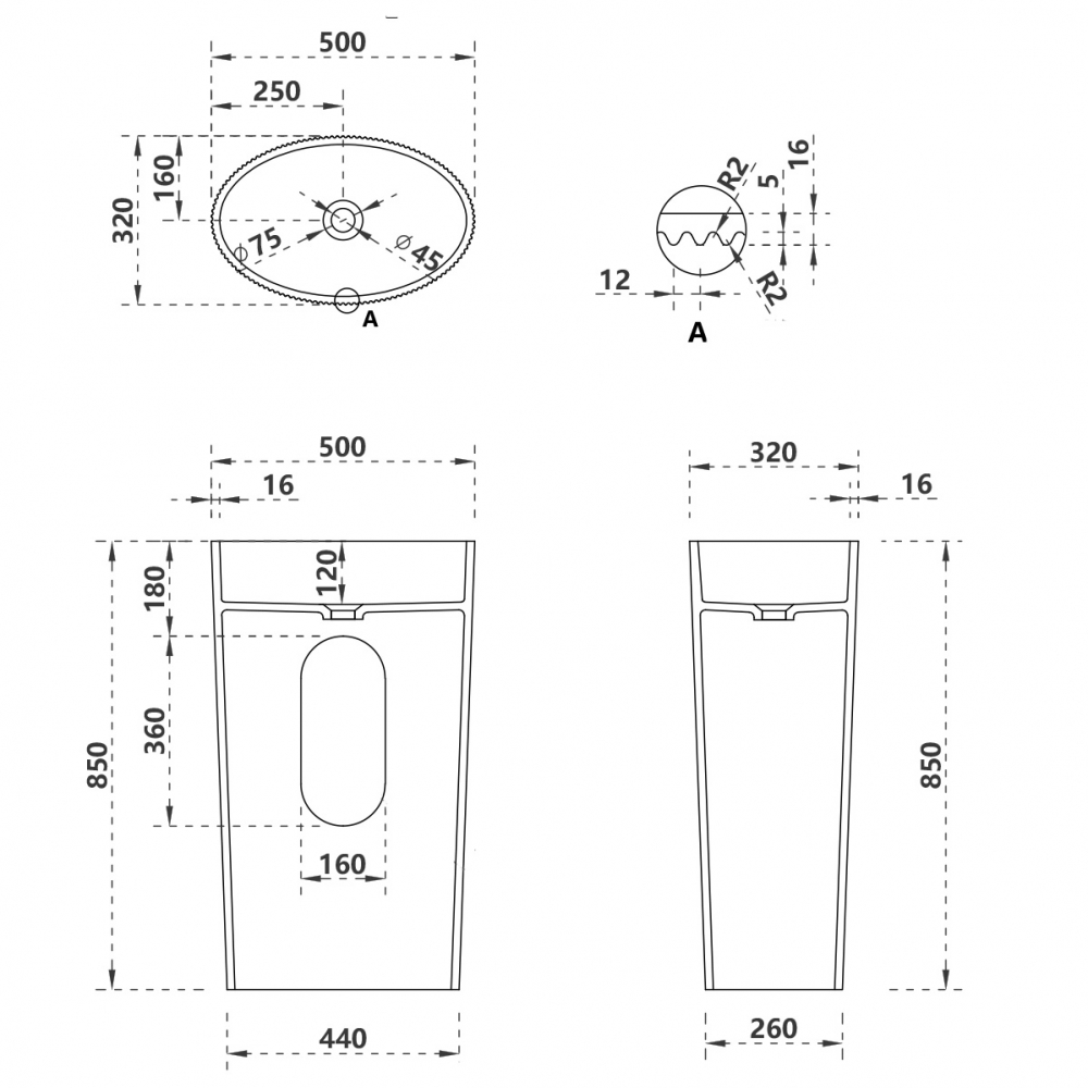 Раковина напольная Abber Stein 500x320 белый матовый (AS2504-H)