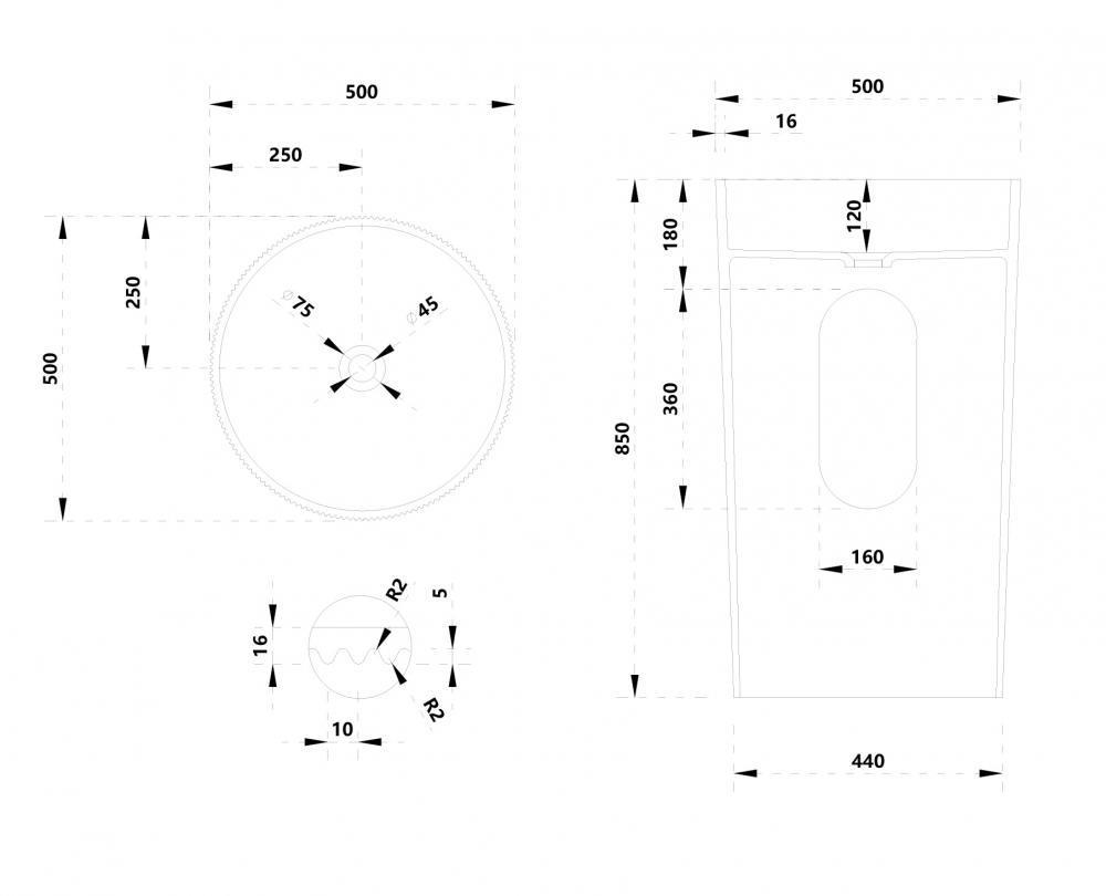 Раковина напольная Abber Stein 500x500 белый матовый (AS2501-H)