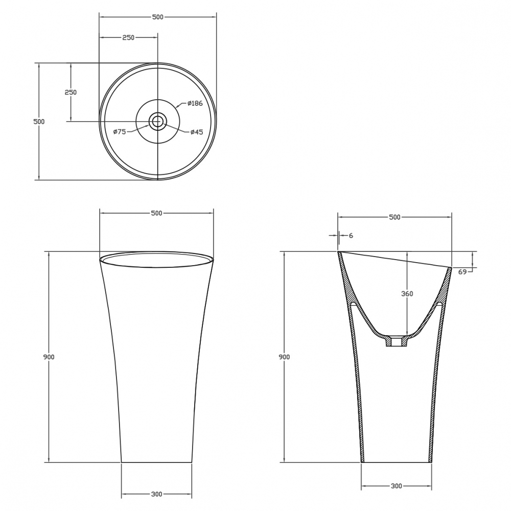 Раковина напольная Abber Stein 500x500 белый матовый (AS2509)