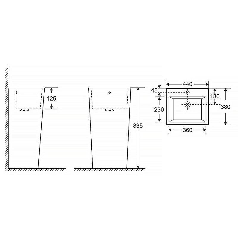 Раковина напольная Azario 440x38x83,5 белая (AZ-303)