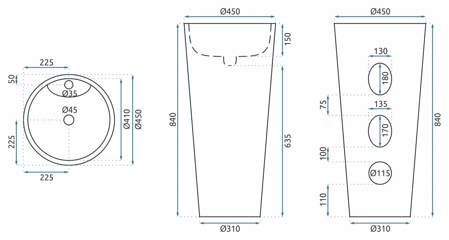 Раковина напольная Rea Anya 45x45 белый (REA-U6503)