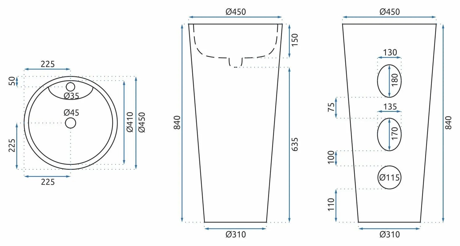 Раковина напольная Rea Anya 45x45 мрамор матовый (REA-U5802)